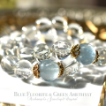このブルーフローライトとグリーンアメジストのクリアーな輝きは、 川のせせらぎのように