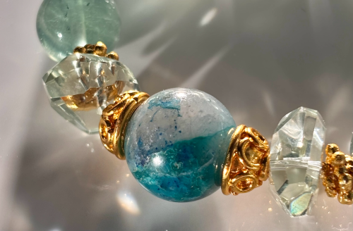 全体的にグリーンの透明感あふれるクリスタルを組み合わせ、