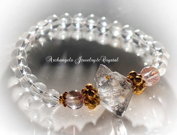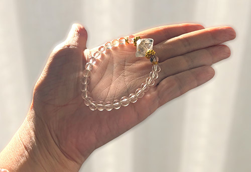 水晶をメインにしたクリスタルを組み合わせたブレス。