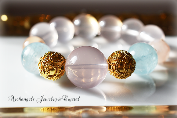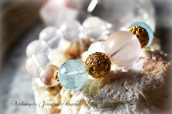 アクアマリン、チェリーブロッサムアゲートを使ったブレスのご紹介です!
