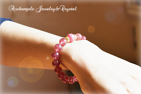 綺麗なチェリー色のピンクエピドートをメインにしたブレスです。