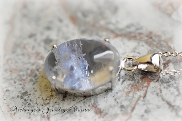 青いインクルージョンが魅力のクリスタルです。