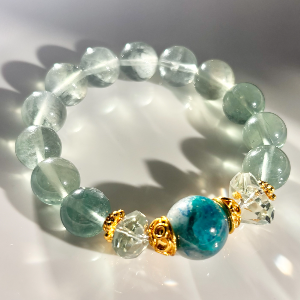 全体的にグリーンの透明感あふれるクリスタルを組み合わせ、