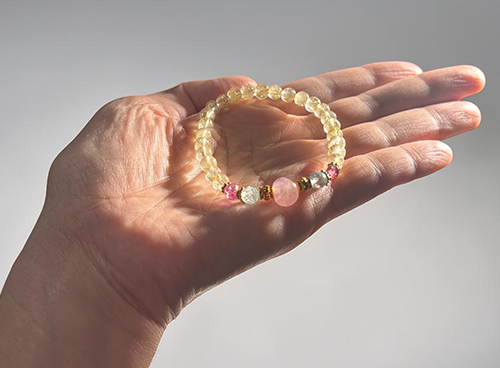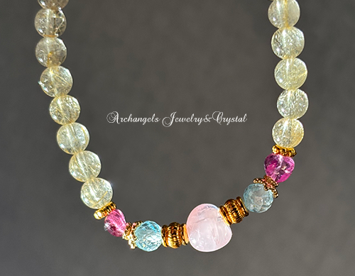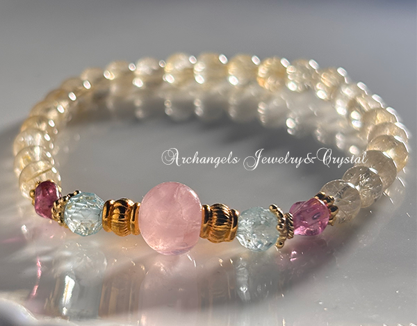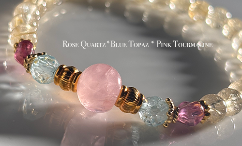 MUSE Amuletブレス「Pink Moon」ローズクォーツ*ブルートパーズ*ピンクトルマリン*ルチルクォーツ