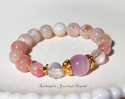 MUSE Amuletブレス「Pink Moon」クンツァイト*スターローズクォーツ*ロードナイトシリカ*桜瑪瑙